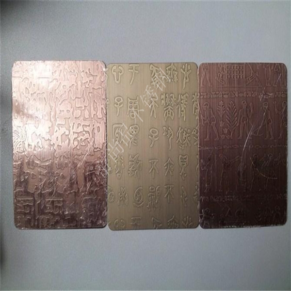(1)采用德國(guó)先進(jìn)水鍍技術(shù),使不銹鋼表面鍍上一定厚度的真紫銅,紅銅,黃銅。達(dá)到能做舊拉絲仿古高端裝飾,解決了以往銅鋼復(fù)合板材料由高分子膜復(fù)合易分離、起泡的缺點(diǎn)。